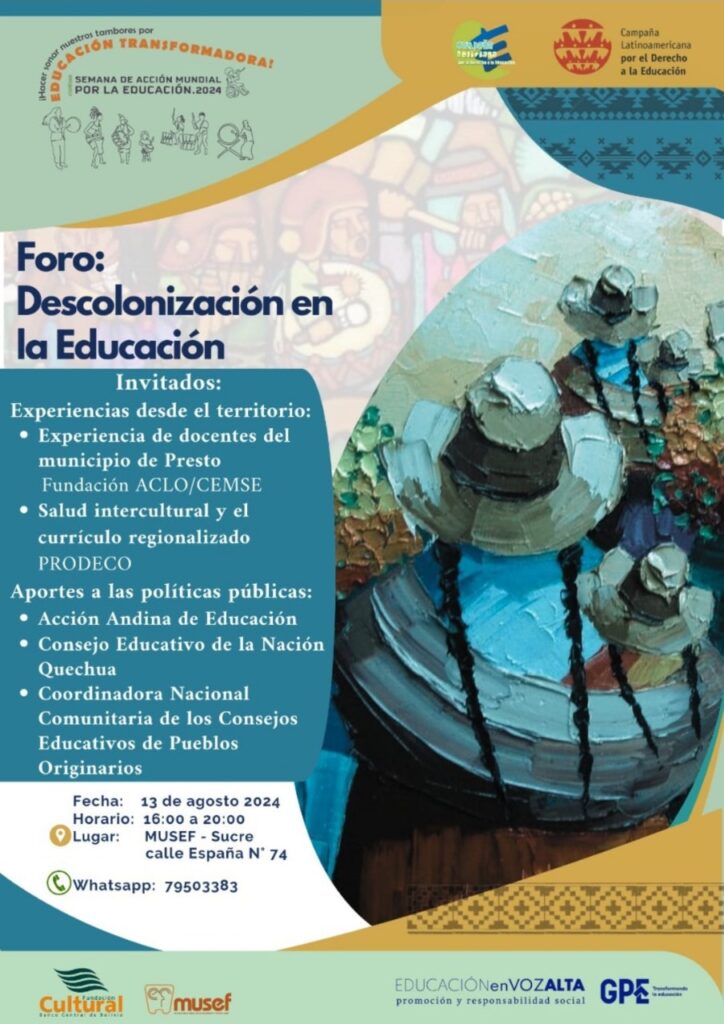 La Campaña Boliviana por el Derecho a la Educación (CBDE) te invita a participar en el Foro «Descolonización en la Educación», un evento crucial para promover el diálogo y la reflexión para avanzar hacia una educación transformadora. Este foro tiene como objetivo abordar los retos, oportunidades y estrategias necesarias para concretar una educación que refleje […]